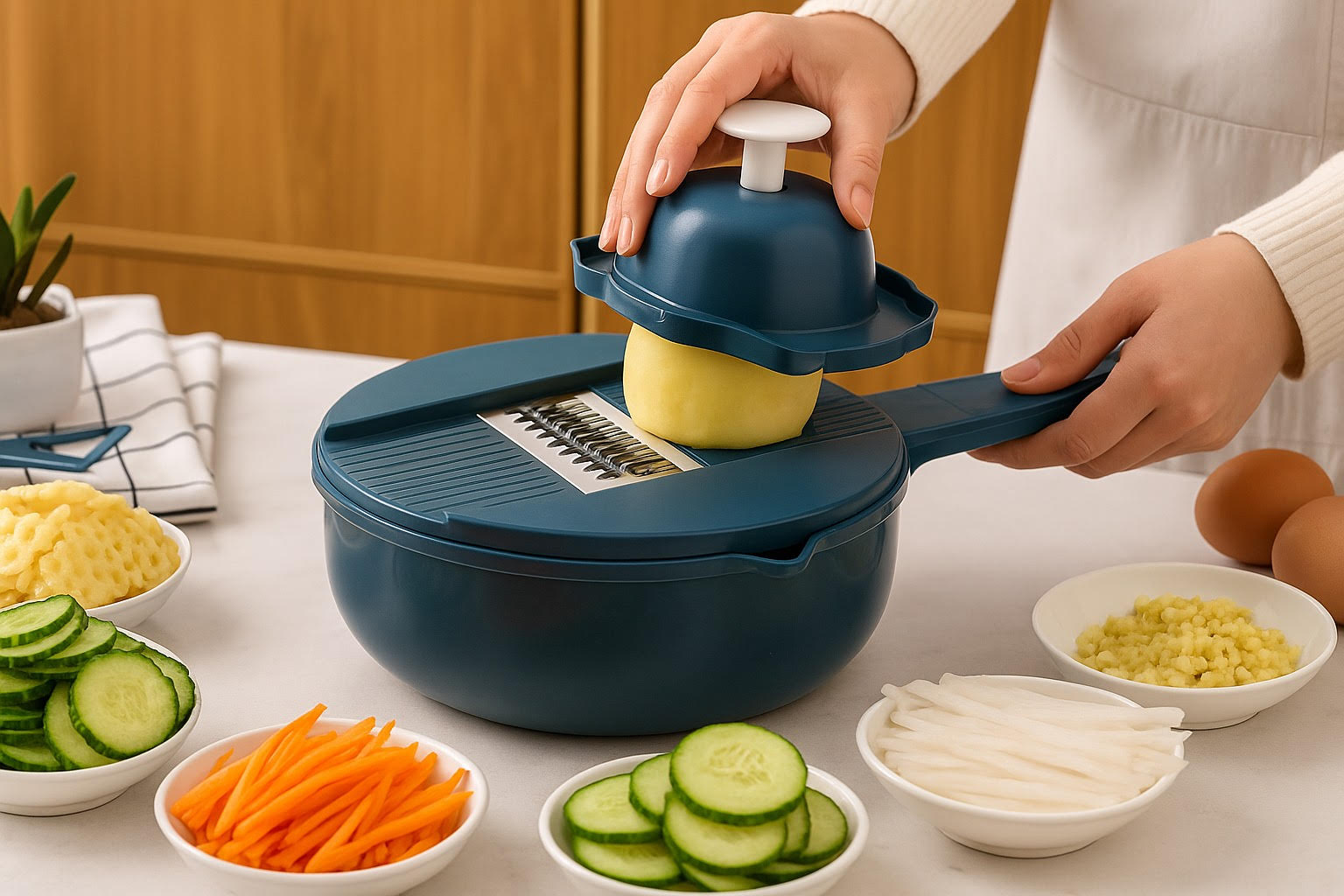 Upgrade your kitchen routine with the QuickShred 9-in-1 Multifunctional Vegetable Cutter — the all-in-one kitchen tool designed to make cooking faster, easier, and more enjoyable.